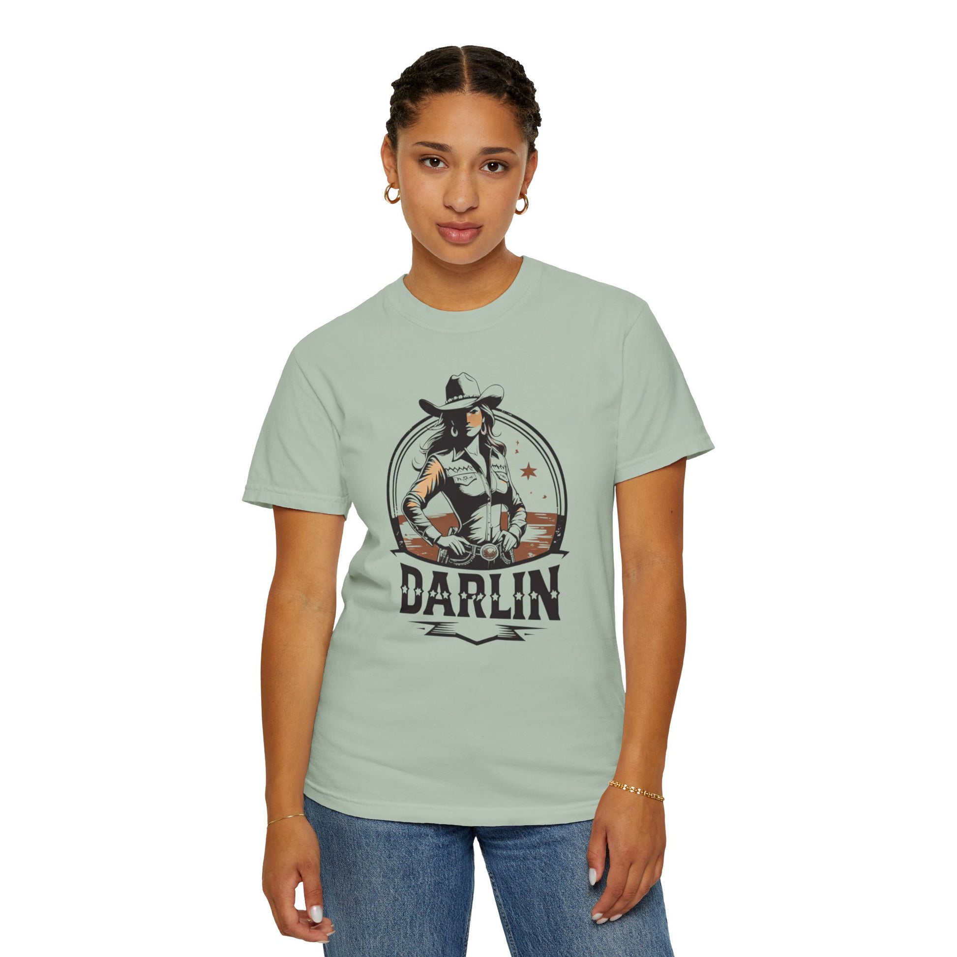 Darlin Rustic Horizon Cowgirl UNISEX T-Shirt|Festival Wear, Casual Outfit, Gift for Nature Lovers, Vintage Style Tee, Summer Essential