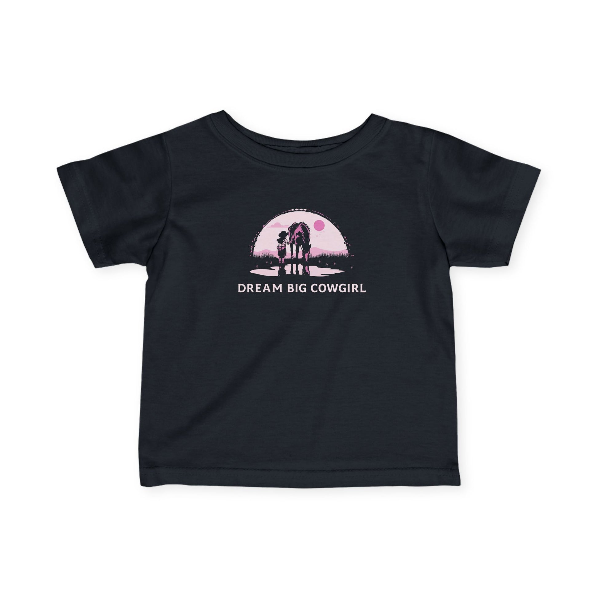 Petites mains, grands horizons. Ce doux t-shirt pour bébé arbore un petit motif western : une silhouette bottée, des tons naturels et l'encourageant message « Rêve en grand, cowboy ! ». Léger et respirant, il épouse délicatement la peau fragile de votre petit cow-boy pour qu'il puisse explorer, faire la sieste et s'amuser en toute liberté. Sa coupe classique offre une grande liberté de mouvement ; le col côtelé et les épaules renforcées conservent leur forme lavage après lavage. À porter avec une salopette en jean ou un gilet douillet pour les journées au parc, les photos de famille sur la terrasse ou les matins paisibles avec un biberon chaud.