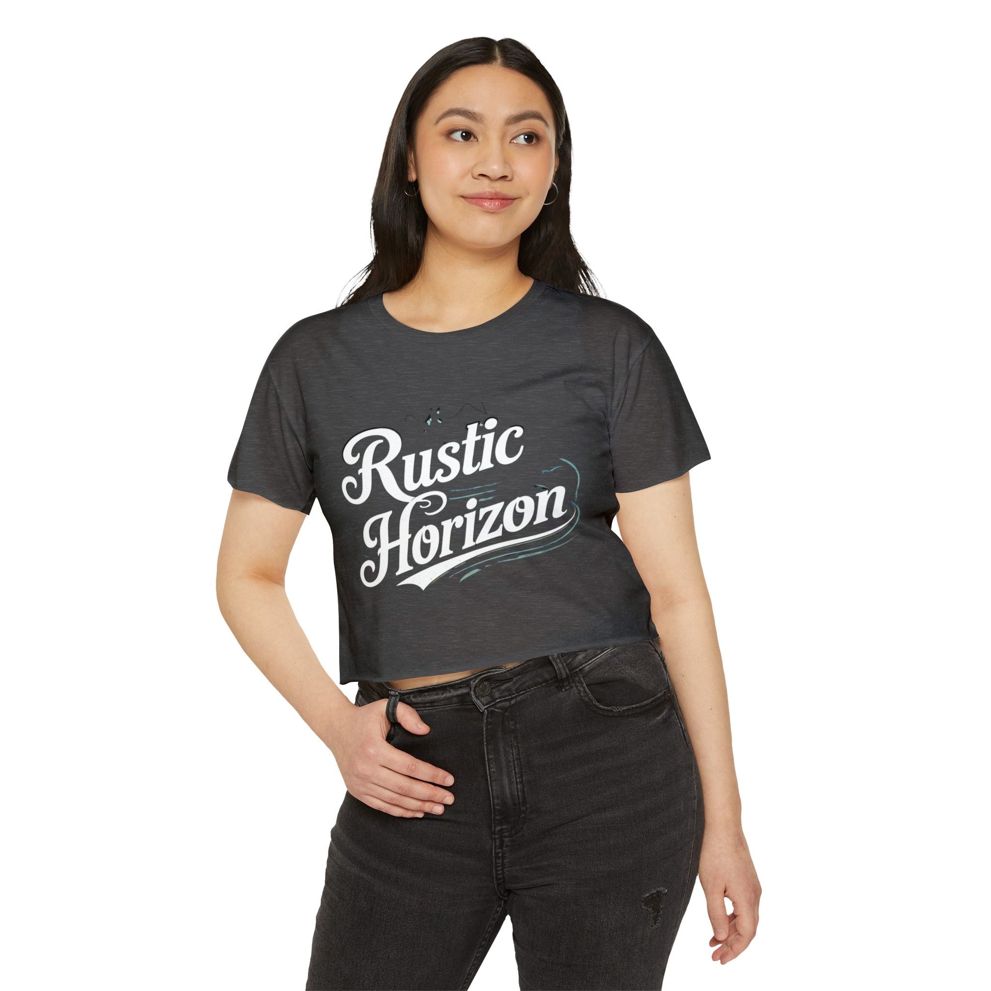 Rustic Horizon Women's Festival Crop Top - Boho Chic Graphic Tee for Music & Art Lovers